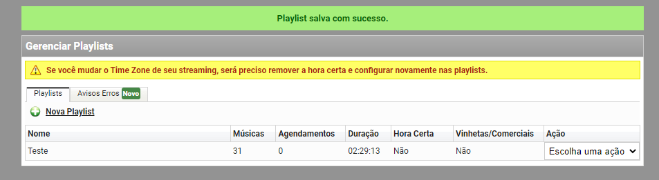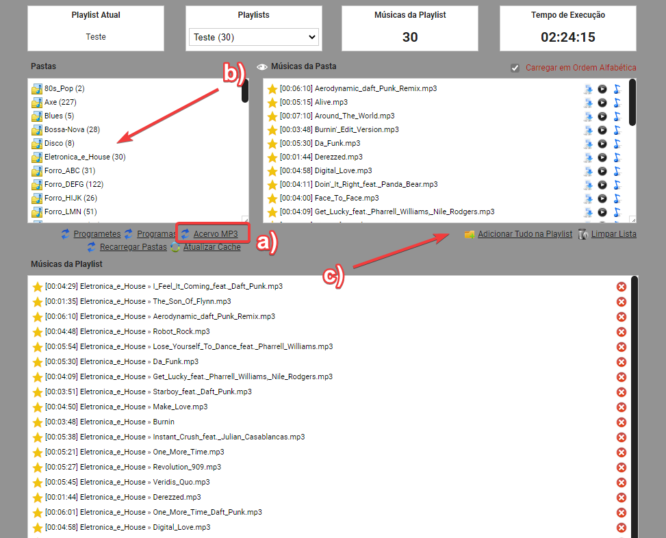 2- Escolha qual playlist você irá adicionar as músicas do acervo mp3 e vá em “Gerenciar”: