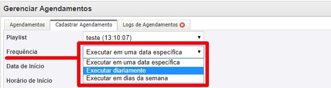 4 – Defina a frequência em que o AutoDJ irá reproduzir a playlist que está sendo agendada: