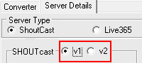 2-Se você for transmitir conectado na porta DJ do AutoDJ, você deverá marcar a opção v1 pois o AutoDJ ainda esta na versão antiga(a nova versão ainda contém alguns bugs e estamos aguardando a correção por parte dos desenvolvedores do Shoutcast)